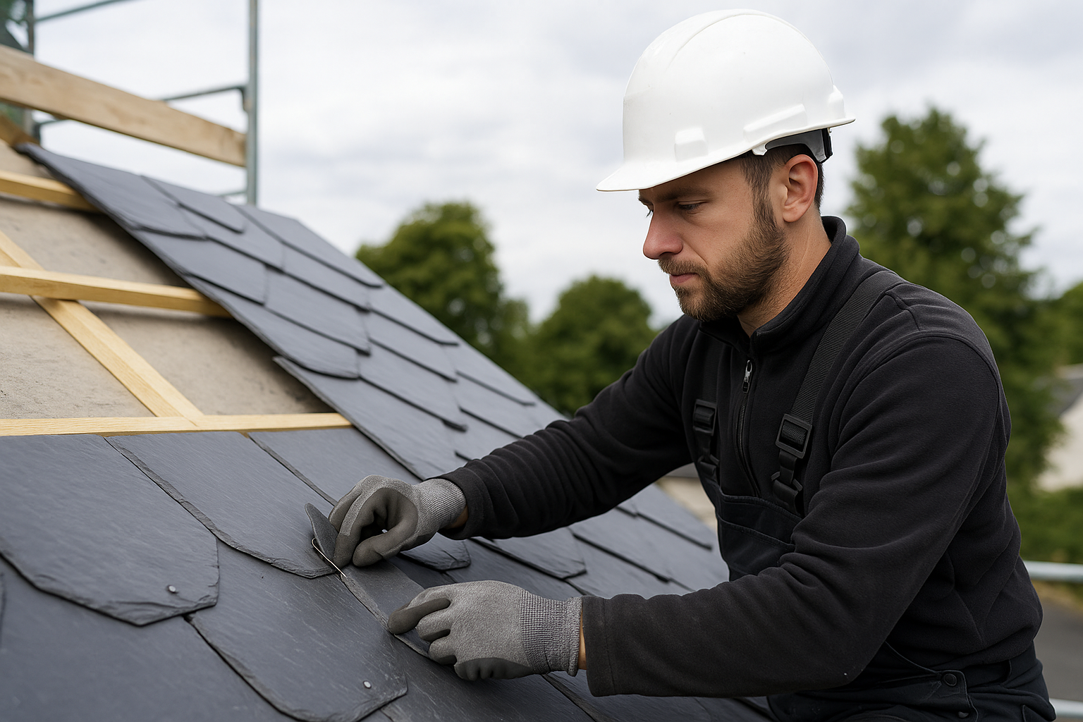 Ob Klempnerarbeiten, Schieferverkleidung, Dachwartung oder Reparaturen – wir bieten Ihnen umfassende Lösungen rund ums Dach, ausgeführt mit Präzision und Erfahrung.